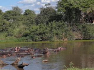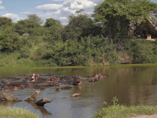 Grumeti Serengeti Camp is situated on the edge of the water and is often covered with a leafy layer of water cabbage under which hippos hide from the hot sun.  The pan is rich in bird life, and many species of wading birds can be found here.  The Grumeti is has a lot of resident game and is a wonderful place to watch the migrating wildebeest and other game cross the river.  Activities include game drives, balloon rides and sundowner drives.  You will never be bored here!