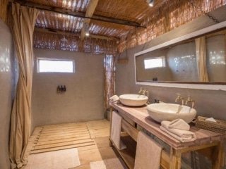 Accommodation consists of 10 thatched units, each raised on individual wooden decking. Recently refurbished, each unit has it’s own en-suite bathroom with shower and a walk in dressing area, as well as a private deck that looks out over the breath taking views that surround the camp on all sides. Guest areas include a thatched living area complete with a cosy fireplace, as well as a restaurant and bar. Traditional cuisine is often prepared over an open fire and served al fresco, to the light of lanterns as well as the multitude of stars overhead.