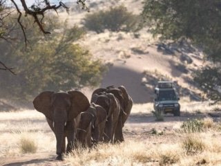 The activities at Damaraland Camp revolve around the wildlife, which is dictated by the natural cycle of rainfall and seasonal movement along the Huab River. Walks and guided nature drives can be organised, as well as morning and late afternoon game drives. Some of the wildlife that can be seen in the area include desert adapted elephant, Gemsbok, kudu, springbok and the rare black rhino, as well as a variety of predators, such as lion and cheetah. The area is also rich in flora and fauna, which can be spotted on a drive out to some of Africa’s most famous rock art, including the famous Twyfelfontein etchings.