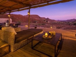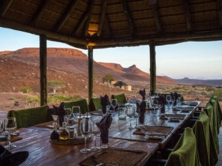Situated in the Huab River Valley, Damaraland Camp is surrounded by some of the most pristine wilderness areas in Namibia. Boasting sensational views of the surrounding desert plains and the ancient peaks and valleys of the Brandberg Mountains, the retreat is considered one of the country’s best camps.