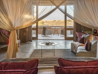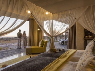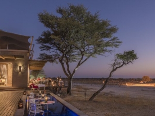 All suites overlook Fischer’s Pan in the Etosha Reserve. The suites are at least 50m apart from each other, ensuring privacy. Each room consists of twin beds, fireplace, air-conditioning, viewing deck,minibar, inside and outside showers.