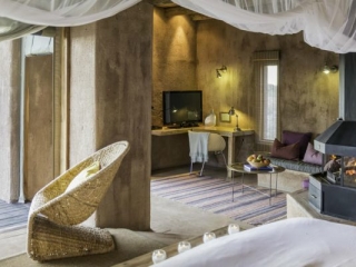 Each suite has a fort-like turret to make the most of the astonishing views, and the front wall is made of canvas so you can roll it up and laze in bed taking in the surrounding desert scenery. Rough stone and earthy interiors are livened up by splashes of lime green and pink, and the spacious bathrooms have both an indoor and outdoor shower so you can rinse off the desert dust under a bright blaze of stars.