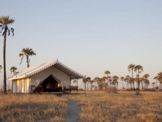 The idyllic and intimate San Camp is situated on the edge of the Makgadikgadi Salt Pans. Standing beneath the desert palms that are scattered around the pan, the white-tented camp is a secluded haven of simple charm. Overlooking the dramatic Kalahari Desert, six spacious tents are spaced a considerable distance from one another, offering guests optimal privacy and quiet relaxation. Designed to place minimal impact on the environment, they afford a uniquely African experience – one where the outdoors and indoors have become one. Guests are greeted by endless skies at sunrise and a heaven of limitless stars at night.
