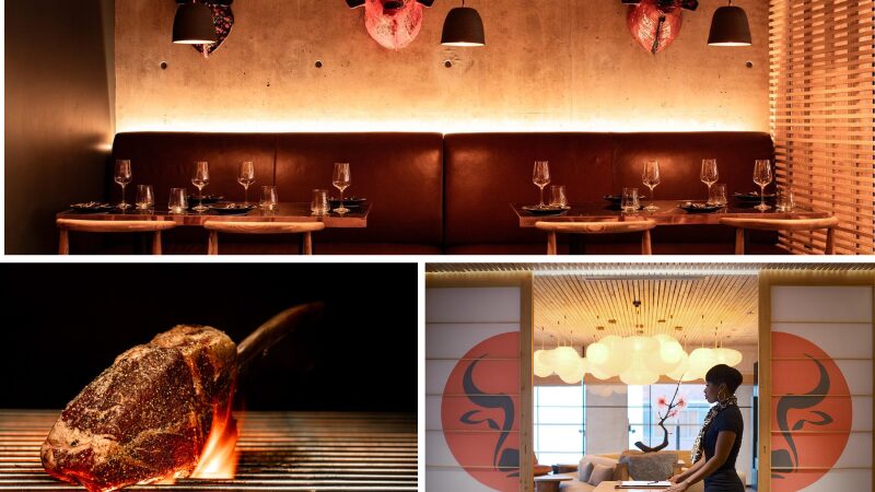 East City Grill is a premium steakhouse offering innovative flame-grilled South African classics fused with Asian flavors. The cuisine is Japanese fusion emphasising local ember-kissed cuts of Wagyu beef. Executive Chef Jaycee Ferreira leads the fire-led menu celebrating South African heritage with Asian flair The ambiance is chic and sophisticated with a  tea room/lounge featuring a cherry blossom sculpture under hemp and paper lanterns.